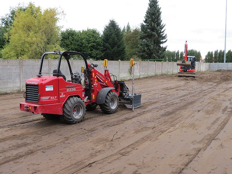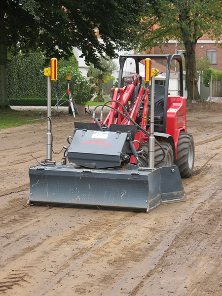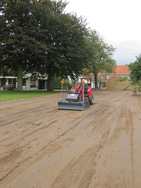 Nivelleren van terreinen, opritten en pistes. Met behulp van een lasergestuurde machine bieden wij u de mogelijkheid om uw terrein vlak of onder de juiste helling te bewerken.